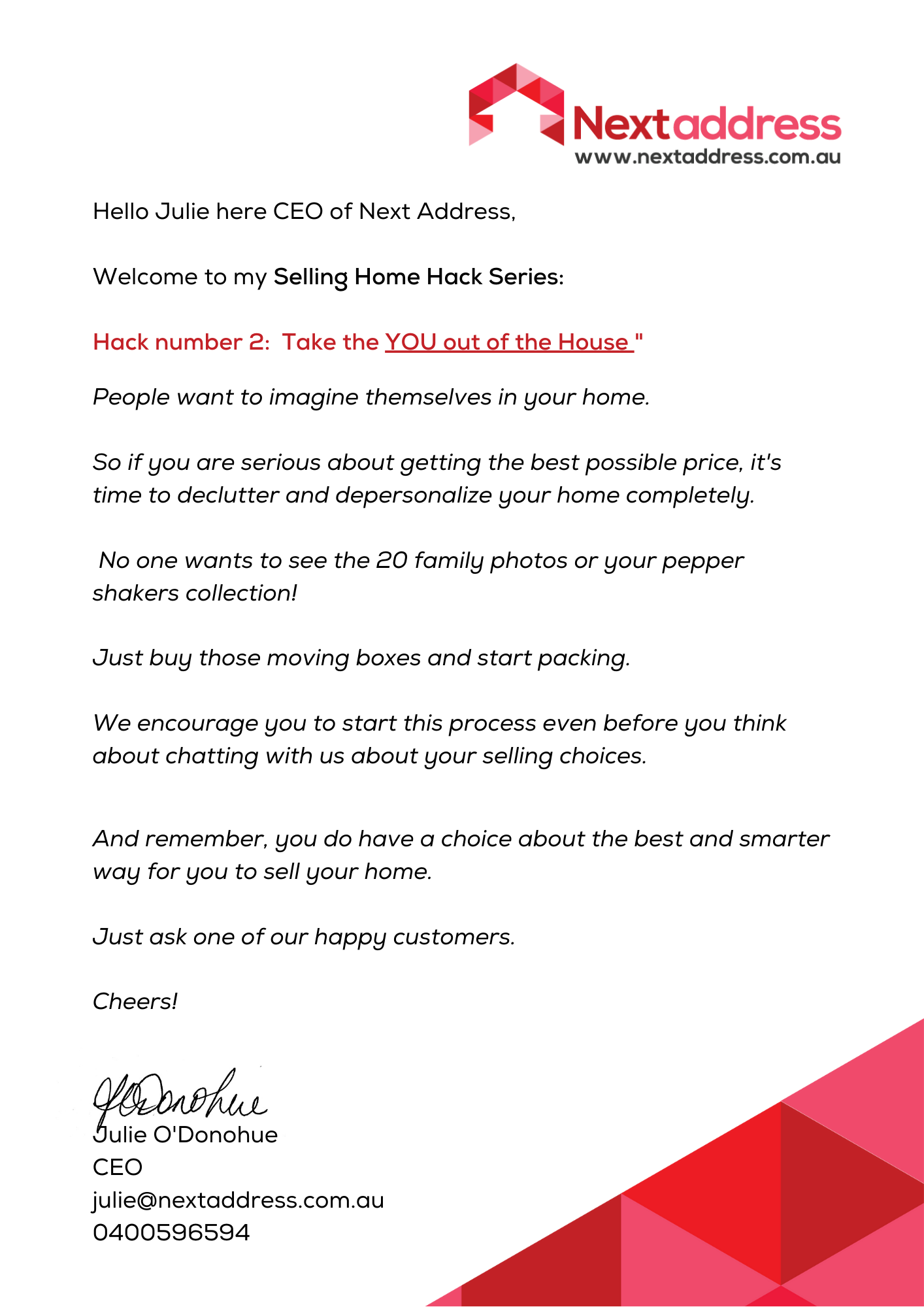 So if you are serious about getting the best possible price, it's time to declutter and depersonalize your home completely.